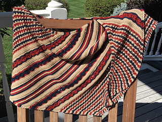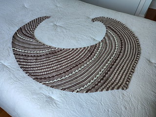 This shawl has been test knit both with light fingering and fingering weight yarns.