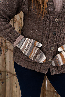 Samples shown: size L in Bare Naked Wools Parfait Worsted, color Coffee & Cream and size S striped in a random variety of Bare Naked Wools worsted weight yarns