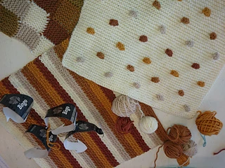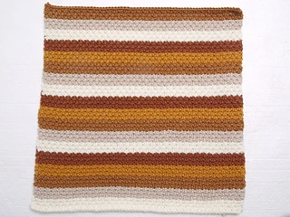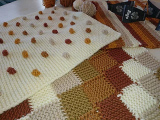 De kleinste deken is 80x80 cm groot. Hiervoor wordt ieder blok 1 keer gebreid. De grootste deken wordt 160x200 cm, hiervoor wordt ieder blok 5 keer gebreid.