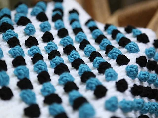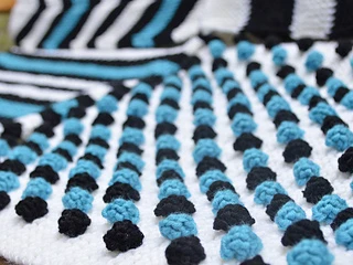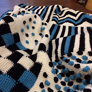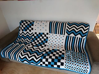 Het uitgangspunt was een grafische modulaire deken met textuur en kleur. Dat is gelukt!