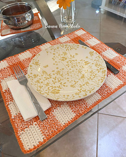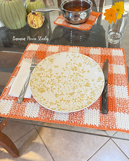 This pattern is available free, ad-supported on my website here: https://bananamoonstudio.com/crochet-gingham-placemat-pat...