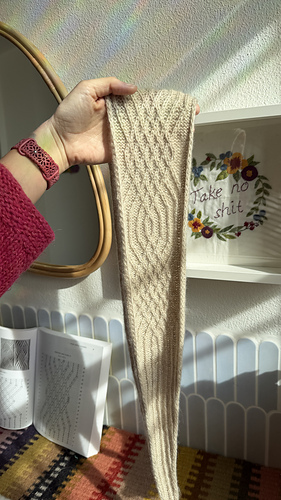 Ferro Battuto means Iron Work in italian. The design chart is adapted from Barbara Walker’s Wrought Iron Panel 1 from her Charted Knitting Designs book. This tiny scarf is designed to be your companion from the colder winds into the spring mornings. Something small and light that can fit into any bag or coat pocket, but warm and super soft to the touch.