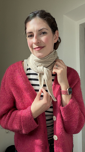 The yarn used for this is 100% Cashmere from Chianti Cashmere Very small production where the goats roam throughout Tuscany, Italy, and they are hand combed by Nora. A truly special yarn to work with! 1.