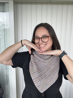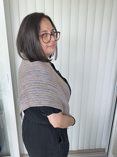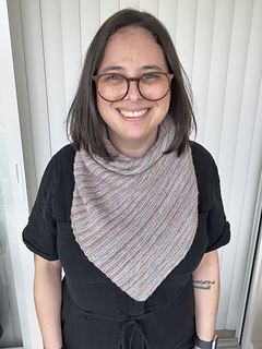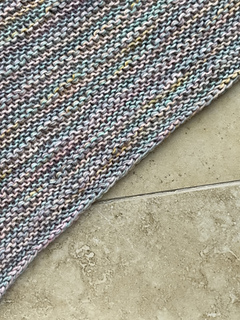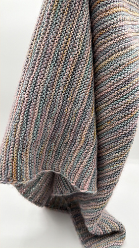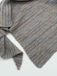 This asymmetrical triangle shawl is worked from one corner to the bind off edge, starting with a small number of stitches and increasing to form the triangle.