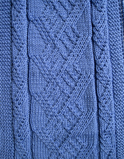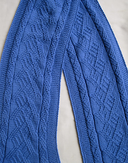 The twisted stitches are bordered by a garter stitch to hold the scarf flat. If you’d like to reduce the size, reduce the number of garter stitches on each end by 2 - 3 sts.
