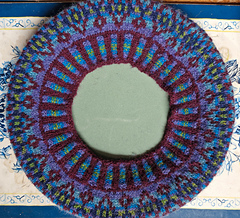 The stranded colourwork pattern of this hat is complemented by four-colour corrugated ribbing; the crown shaping is achieved using centered double decreases. This design, which comes in two sizes, uses small amounts of each shade of the yarn, so it is ideal for using up leftovers in your stash.