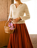 The Fireside Sweater features a flattering neckline without the use of short rows. It’s designed to let you combine multiple strands of yarn to create a unique, textured fabric. You’ll only need a small amount of each yarn, making it perfect for using up those leftover skeins that aren’t quite enough for a full sweater.