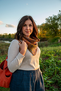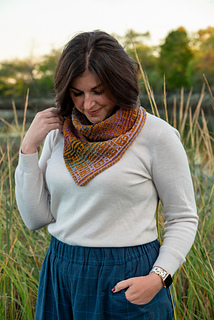The Flannel Crush cowl is worked flat beginning at one corner, shaped with increases and decreases, and seamed after blocking. The cowl features an allover