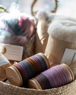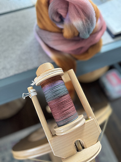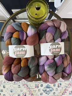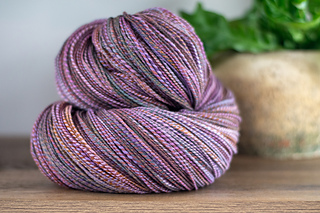 (one 4 oz / 114 g braid of each colorway, spun end-to-end and plied together, resulted in a 236 g skein with 880 yds / 805 m)