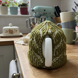 Brioche knitting is a technique that fundamentally relies on slipped stitches and yarn overs to create its characteristic thick, squishy, ribbed fabric which is ideal for this leafy tea cosy.