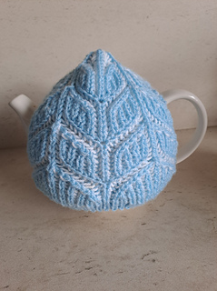 As well as keeping the tea warm, the brioche ribbing allows the cosy to be stretched to any size tea cosy (within reason) and provide a snuggly fit.