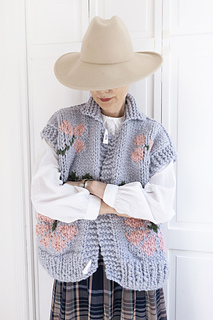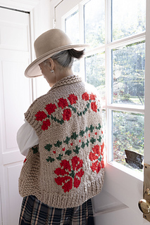 Merino No. 5 74 yards (68 m), 5.3 oz (150 g) each 100% merino wool yarn: 5 (6, 7, 7, 8) balls in Main Color (MC), 1 ball in Flower Color (FC), 1 ball in Leaf Color (LC)