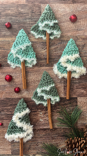 Worsted weight yarn (green for tree, white or sparkle for snow)