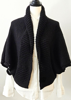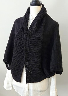 Shrug is worked flat in one piece from lower back hem to upper front ribbing, then folded and seamed.