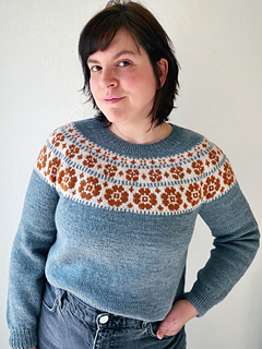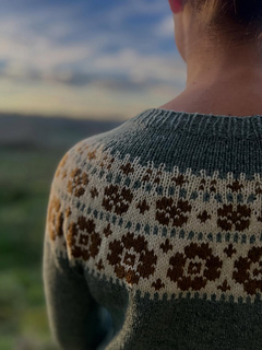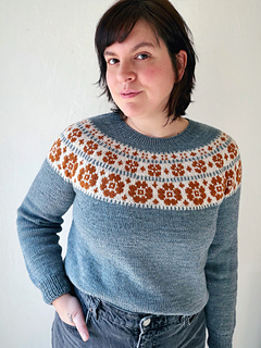 Its floral motif, simple and enjoyable to knit, spreads across the yoke like a response to landscapes still waiting to bloom, a way to bring the flowers we sometimes miss outdoors directly onto our needles.