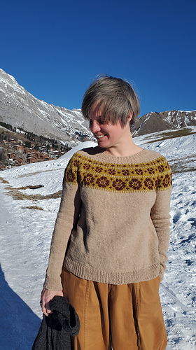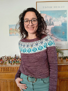 It reflects my love for sweaters with a colorwork yoke, those two-part projects I enjoy so much. You begin with the colorful section, driven by the curiosity to see the pattern unfold, before moving into a calmer sea of stocking stitch, perfect for relaxed knitting moments.