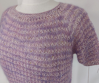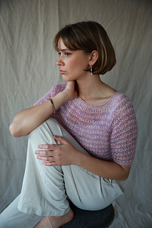 Working on needles size 6.0mm (US 10) with the thin yarn you get a most delicate texture in your blouse.