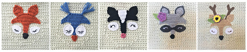 Supplies will include a 15” long rod that has about a 1/2” circumference or round size you prefer, about 300 yards of the main background color yarn and of course use up that scrap yarn laying around for the animal faces. The faces are designed to accent the main detail in the upper face of the animals especially the eyes and ears. Add other fun applique pieces to make it fit your decor, the pattern includes a large flower, small flower, leaf and even a tree pattern you can use.