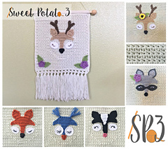 The Forest Friends Wall Hanging is a very cute, whimsical,fun and quick project that you can add to any home decor. The wall hanging makes a cute accent piece for nurseries, children’s bedroom, classrooms, reading nooks or even cabins. The finished size of the Forest Friends Wall Hanging is about 14-15” wide by 18” long counting the fringe but not the top hanger string.