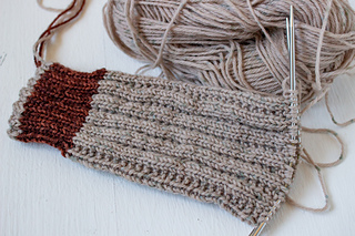 Cuff, heel and sock are knitted in contrasting colors but you can always choose to make everything your own style.