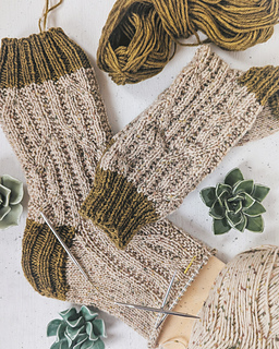 Die Socken sind aus dickem Garn gestrickt. Sie sind also nicht nur schön warm, sondern auch schnell gestrickt – perfekt, wenn du es eilig hast, es dir gemütlich zu machen oder ein wärmendes Geschenk zu stricken.