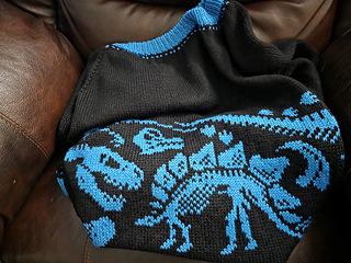 My very first passion was for dinosaurs. I had an imaginary Saltopus friend that followed me around, and in first grade I was very proud to say that I wanted to be a paleontologist when I grew up (I’m sure my parents were just proud I could even pronounce the word at 6 years old). Now, eons later, I’ve excavated a knit top that brings together my first love and current passion for knitting into a unisex sweater so that these prehistoric beasties can keep us cozy all year long!