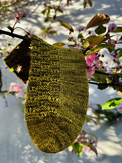 Débuté par la pointe formée au moyen de jetés, il se tricote comme un tube puis un gousset haut est façonné selon la même technique pour préparer la réalisation du talon en rangs raccourcis et donner un peu d’aisance.