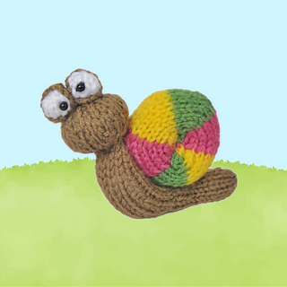 For confident beginners and above, other techniques used include casting on and off, knits, purls, increases and decreases, knitting stripes, and seaming to finish. The snail shell uses short rows (wrap and turn) for shaping, and the eyeballs are knitted bobbles.