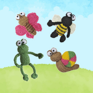 These little creepy crawlies are quick to knit, and are a super way to use up odds and ends in your yarn stash. This knitting pattern includes instructions to make four toys, including a snail, bumble bee, butterfly and frog. Designed by Amanda Berry @fluffandfuzz, the toys are knitted in acrylic DK yarns on single pointed needles (not in the round). The arms and legs are i-cord tubes worked on two DPNs.