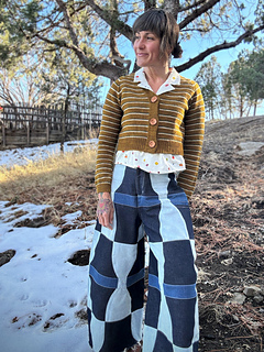 Soft, fluffy yarn, playful stripes, and buttons that offer a pop of color are just the ingredients to lift us out of the winter doldrums! Recently, I found all of my cardigans to be just a bit too long for a lot of my trousers, so I opted for a sweet, cropped length to pair with the whimsical halo of the yarn. You can also opt to go a few inches longer for the full length version. Either way, I hope this cardi brings you some brightness!