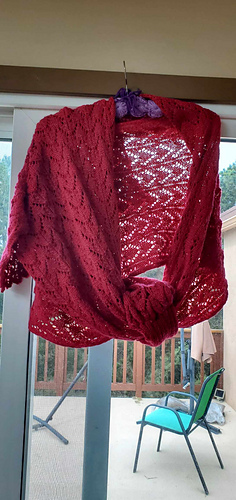This beautiful lace wrap is very clever to knit and wear. It begins with a gorgeous lace edging then stitches are picked up at the straight edge and the easy lace pattern is worked. At the other end the pattern turns into 2X2 ribbing keyhole. Therefore, the wrap can be put through the keyhole creating different options to wear the wrap.