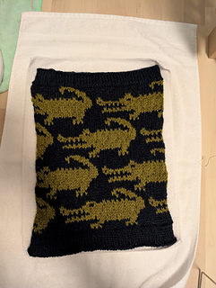 A Neck Gaiter is useful for skiers, snowshoers, hikers, workers & walkers or anyone outside in winter cold. A Gaiter needs to be a bit tighter than a cowl as it needs to stay up snug to the skin, like a sock! As for the motif, well nothing screams winter like an alligator. I know, right??? I like to think the Gator helps a skier “tear up the mountain”! Or at least stay uber warm. An interesting factoid, in all of Ravelry, there are only one or two other patterns that have alligators on a knit background. There are stuffed toys, or scarves where the whole item is one alligator. The alligator needs a little love from the knitting community. Knit in Malabrigo Rios and Rios Solidos. Random purl stitches in the Gator body adds a little realism to the alligator skin. Optional applied Icord on the edge gives a little more structure and stiffness to keep it standing up on a cold day. Should I have called it a GREATER GATOR GAITER? I think not.