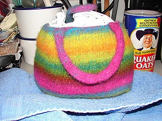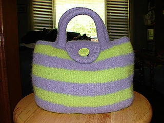 Yarn Requirements: 210 yards each of a DK weight wool and a worsted weight mohair blend that will felt easily, or 420 yards wool held double throughout.