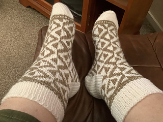 Geometrix Socks are a fun and bold design featuring clean geometric lines and an engaging, easy-to-follow repeat. The pattern is written for comfortable, enjoyable knitting, whether you prefer watching the shapes emerge or love a rhythm you can relax into.