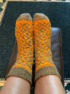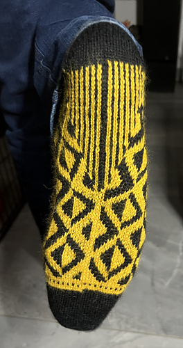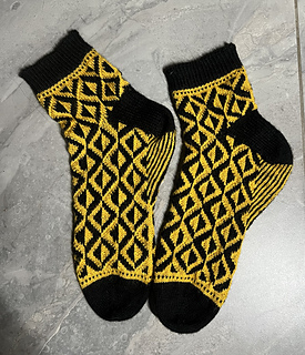 Geometrix Socks are a fun and bold design featuring clean geometric lines and an engaging, easy-to-follow repeat. The pattern is written for comfortable, enjoyable knitting, whether you prefer watching the shapes emerge or love a rhythm you can relax into.