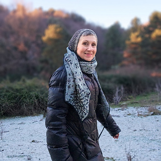 You work the modules one by one, each telling a part of the story. The snowflakes sit on the bias, like drifting crystals in a winter wind, then their paths meet through the Joining Triangles, those small bridges of stitches that bring everything together. The triangles don’t just unite the modules; they steady the scarf, levelling the edges.