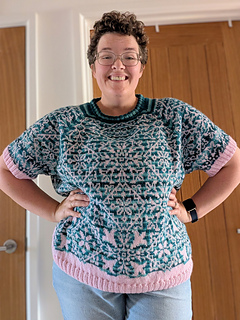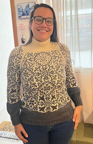 Techniques used: Lifted increases, stranded colourwork, Backwards loop cast-on, knitting in the round, 3-needle bind-off.