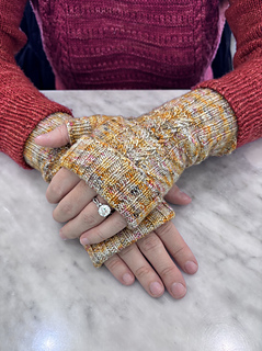 The Gia Mitts have all the qualities that I love in a textured mitt pattern: twisted knit stitches, knit-purl patterning, and an easily-memorizable motif that results in something elegant and functional. Fingerless mitts are the accessory I reach for first during the chilly months, and this quick knit adds a little more warmth to my hand knit wardrobe. This is the sister pattern to my Gia Socks pattern.