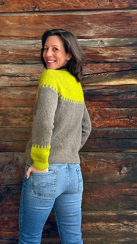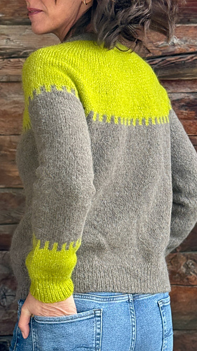 Le gilet GIANNA est tricoté du haut vers le bas, en une seule pièce et sans couture. Après quelques rangs raccourcis pour façonner l’encolure, l’empiècement est travaillé à l’aide d’augmentations de type yoke, permettant de former progressivement le haut du corps et des manches, tout en plaçant le motif de couleur en mosaïque.