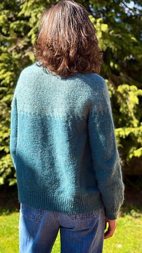 Pour info, la version bleue a été réalisée avec les fils Loch Lomond de BC Garn (col. 02 et 10) et Le petit Silk & Mohair de Biches & Buches Col. vert bleu) tenus ensemble.