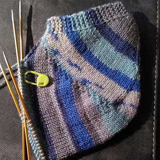 Die pink/schwarz gestreiften Socken wurden wie folgt gestrickt: 4R in pink & 2R in schwarz.