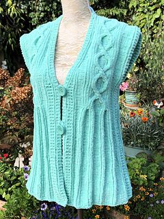 This beautiful gilet, crafted in a luxurious chenille yarn, will keep you cosy and stylish throughout the autumn and winter months. The lower section features wide ribbing worked up to the bust, where it transitions seamlessly into an striking cable pattern for the upper body. This change in patterning gently shapes the garment for a flattering fit. The front and armhole borders are knitted as part of the main piece, minimising sewing up. The design is worked from the bottom up and includes full written instructions.