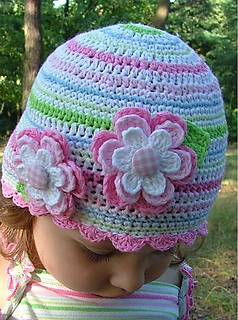 That’s a very girly version of cap, will match perfectly your’s little one easter or spring wardrobe. Instructions for 3D flowers are also included in this pattern.
