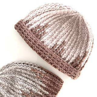 The beanie is crocheted from the top down in rounds on the right side with increases. It can be made in 2 options: a beanie with a round crown, or a slightly longer version with a more pointed crown.
