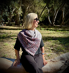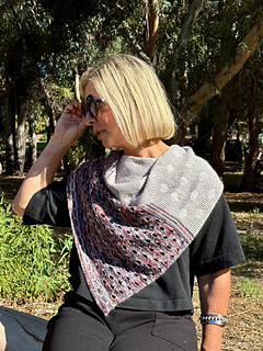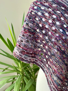 Knit top-down, this shawl plays with circle-inspired stitches that shift and flow together. It’s a fun, dynamic design — perfect for that bold, multicolored skein you fell in love with and never quite knew what to do with!