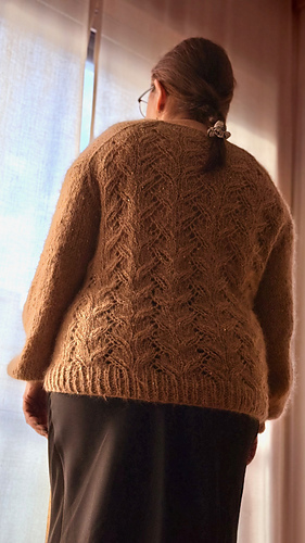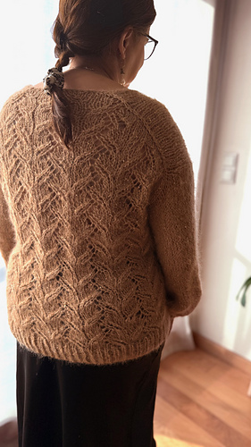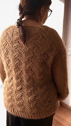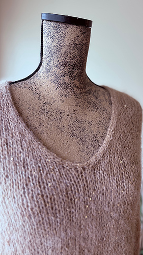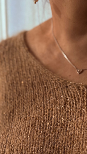 The Golden Dream Sweater is a delicate and luminous piece, designed to shine subtly on any occasion. Knitted in a soft yarn with fine sequins, it catches the light with every movement, creating a magical and sophisticated effect. The V-neckline highlights the elegant design, while the lace pattern on the back adds a romantic and feminine touch. Perfect for those who love to combine comfort, style, and a hint of golden dream.