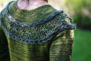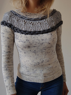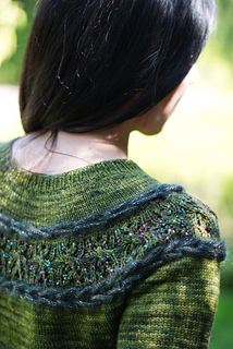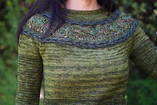 This design brings together different textures to create a truly unique piece: a delicate lace yoke and a braid worked with i-cord technique. Both elements can be made with or without beads, depending on your preferred style.
