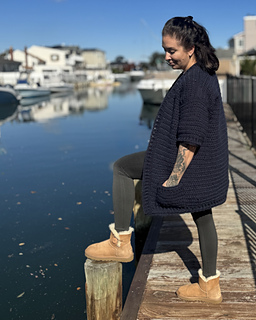 The Goose Island Cardigan is a timeless, easy-crochet layer designed for comfort and practicality. Worked flat in one piece with simple stitches and subtle shaping, it helps the heavier yarn drape beautifully without extra bulk. A natural follow-up to the fan-favorite Biltmore Blanket Cardigan, this version trades the lighter worsted weight for a plush bulky yarn that adds cozy texture and structure. The short sleeves make it perfect for everyday wear — warm enough to keep you comfortable while you move through your day, no sleeve-rolling required. Whether you’re crafting, working, or winding down, this cardigan fits right in.