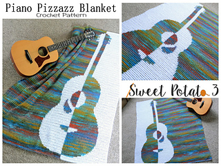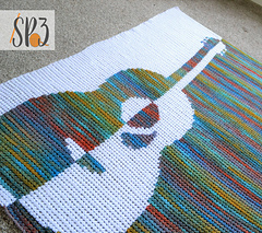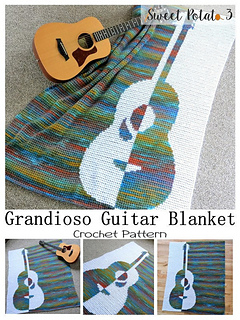 The Grandioso Guitar crochet pattern is a modern, fun, and unique twist to a traditional instrument afghan. The instrument silhouette pops next to the self striping yarn in bold colors next to white. But, make the blanket in a solid color for a more traditional look. These blankets can be customize to anyone and will be popular among all generations.