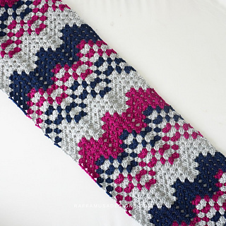– Scarf – 7 3-dc-cl for 6 rows in 4” (10 cm), working the granny ripple st according to pattern.